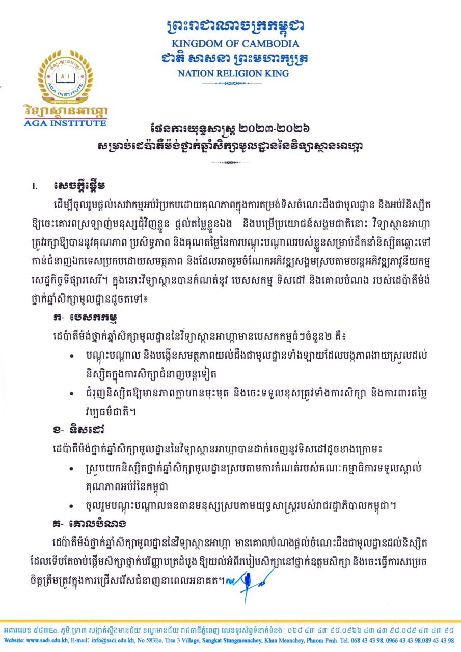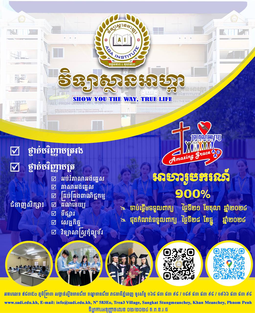 Aga Institute (AI), the leading Christian higher educational institution in Cambodia, is located conveniently in the center of Phnom Penh. Our motto is “Excellence & Quality” and slogan is “Show You the Way, True Life”. This represents a commitment to our high value in the importance of education and research that will help to facilitate the reform of our society into a knowledge and quality-based for our younger generations with all graces from Lord Jesus Christ. In order to achieve this, the learning environment, campus, facilities, curriculum, faculty members and students are being improved at a competitive level. Moreover, it is important that we have to take all the essential approaches that will shape our students to meet the social needs and expectations. Please join us on our journey towards the excellence in education.