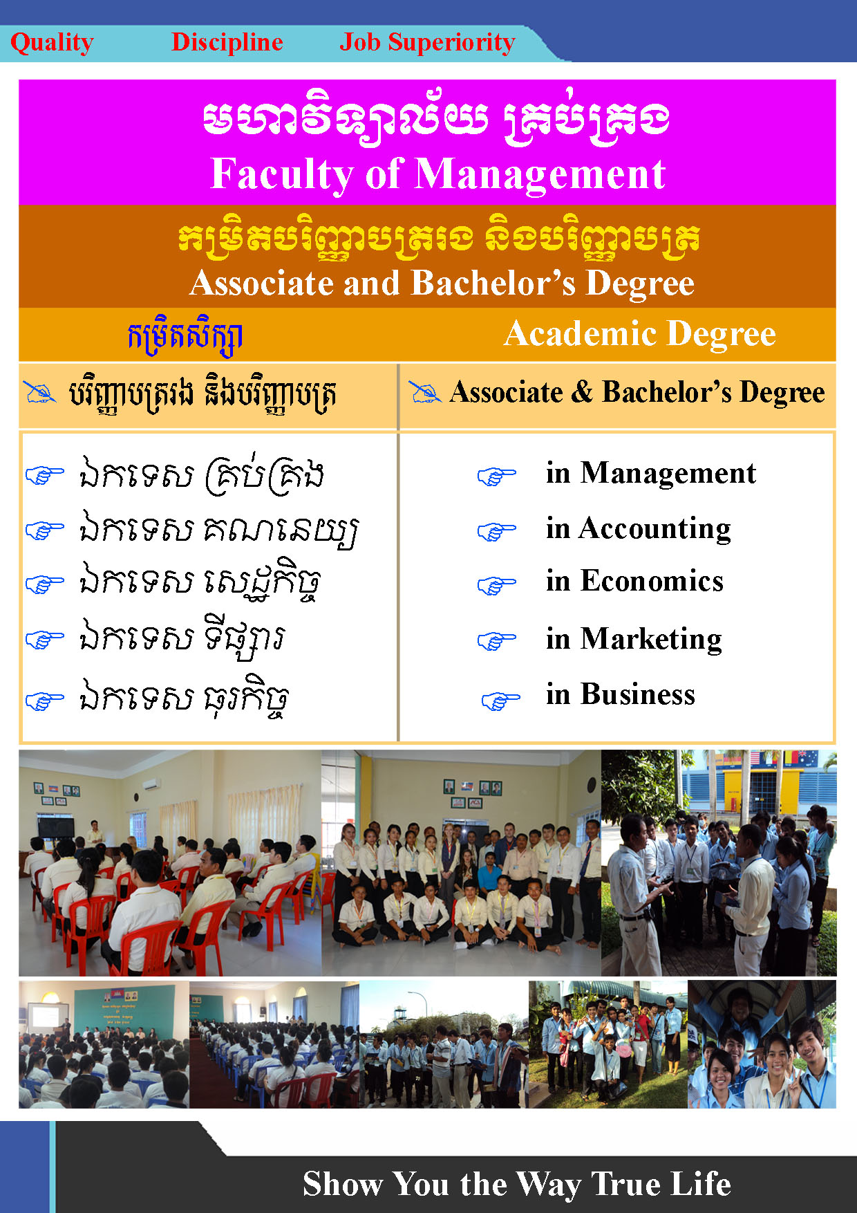 This is a four-year full-time program which aims to equip a higher skills for the students for the better-paid jobs. It is open to students who have successfully completed their High School. To enroll into this program, students need to have a high school certificate or its equivalent.